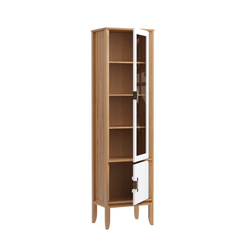 - Артикул Шкаф для посуды Бридж узкий с 1-ой стеклянной дверью и 1 глухой дверью браун/белый лак