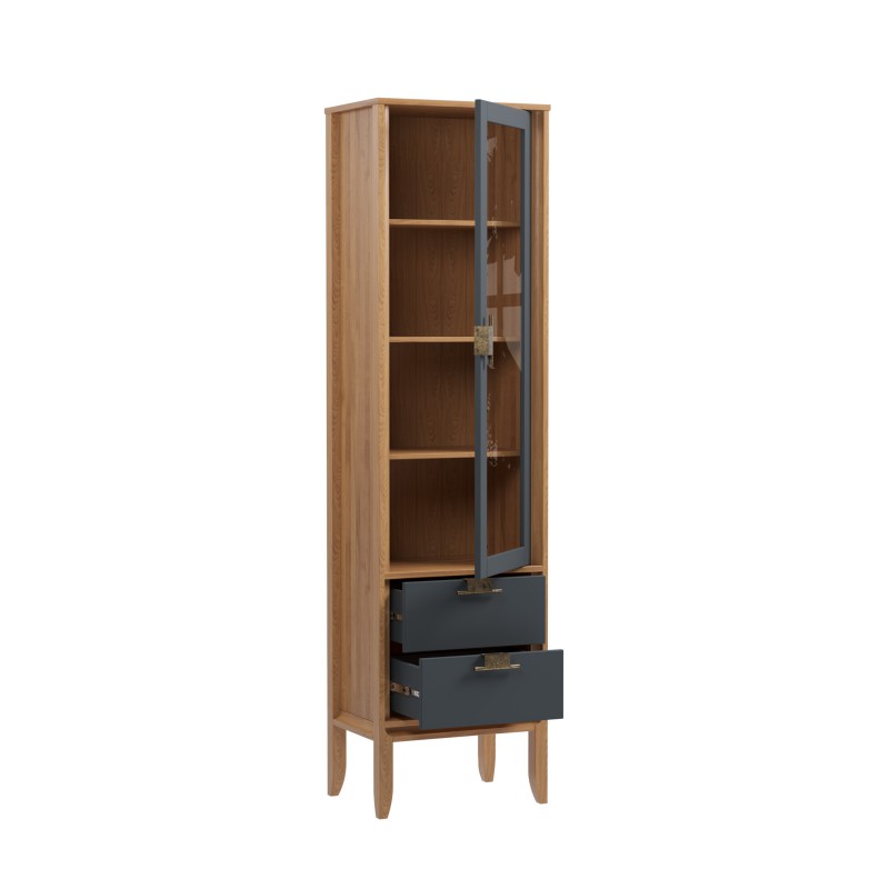 Шкаф для посуды Бридж узкий с 1-ой стеклянной дверью и 2-мя ящиками браун/серый 7012