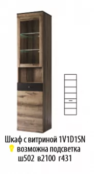 - Артикул Шкаф с витриной 1V1D1SN Jagger