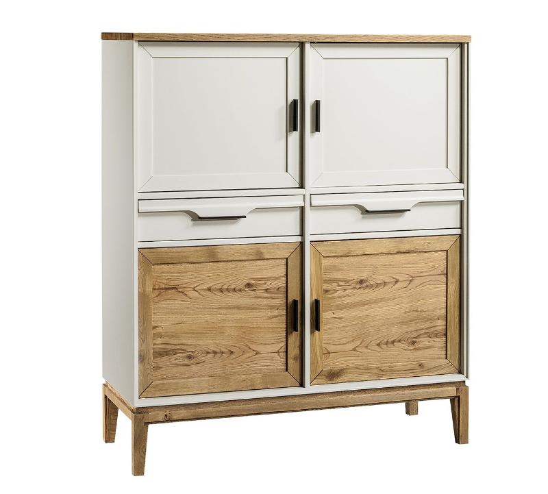 Серия мебели Гранада выполнена полностью из массива сосны. Современный стиль мебели идеально впишется в Ваш интерьер квартиры или загородного дома создавая уютную и стильную атмосферы. В коллекцию входит однодверные и двухдверные тумбы, шкафы для посуды с остеклением и без остекления. Корпуса, фасады и полки изготавливаются из массива сосны, задние стенки и днища ящиков из ДВП. На выбор два цветовых сочетания: «белый воск/антик 24» или «серый 7016/антик 24». Шкаф для посуды 42 Гранада с 4 дверцами и 2 ящиками изготовлен из массива сосны – прочного и долговечного натурального материала. Задняя стенка сделана из ДВП.
