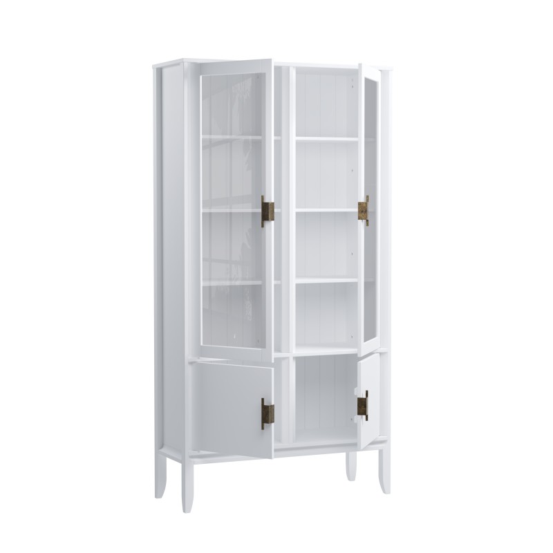 Шкаф для посуды Бридж широкий с 2-мя стеклянными дверями и 2-мя глухими дверями белый лак