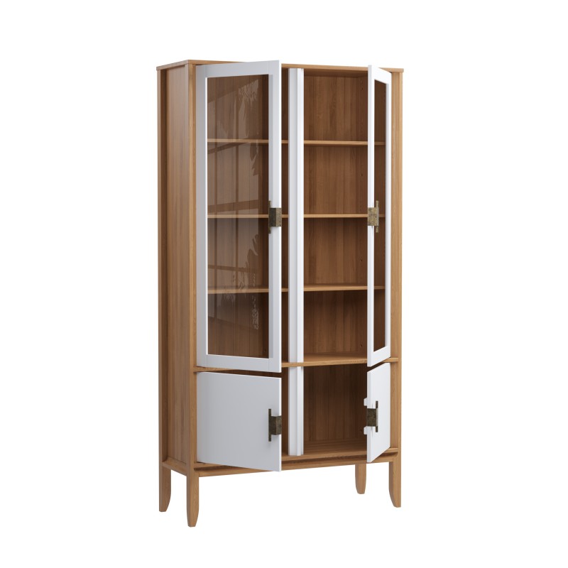 - Артикул Шкаф для посуды Бридж широкий с 2-мя стеклянными дверями и 2-мя глухими дверями браун/белый лак