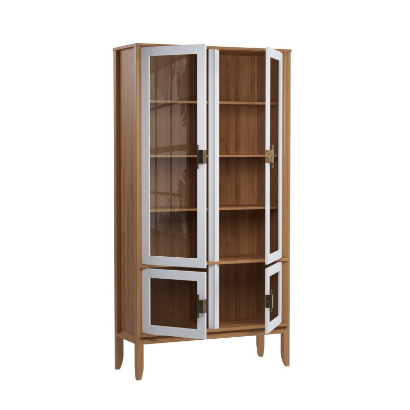 Шкаф для посуды Бридж широкий с 4-мя стеклянными дверями браун/белый лак