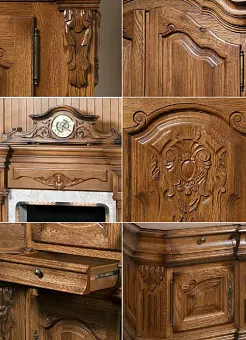 Мебель серии Версаль изготавливается из массива дуба с ручной резьбой по дереву. Поставляется в четырех цветах: дуб натуральный, дуб с патинированием, орех, слоновая кость с патинированием. Все изделия изготавливаются под заказ в течении 30 рабочих дней.