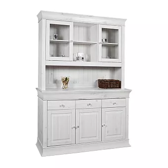 Буфет “Бостон” - для тех, кто делает кухню “на века”. Изготовлен из натурального дерева, что означает долгий срок службы и отличные износоустойчивые качества. Классический дизайн с современными элементами. Нижняя часть представляет собой трехстворчатый шкаф с удобной столешницей, верхняя имеет открытые и закрытые стеклянными дверцами отделения для посуды.