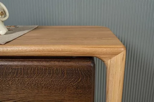 иметацией рейки. Столешницы изделий покрыты шпоном дуба поверх сращенного дубового щита, что придает поверхности