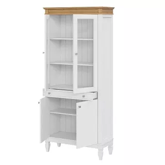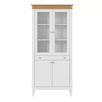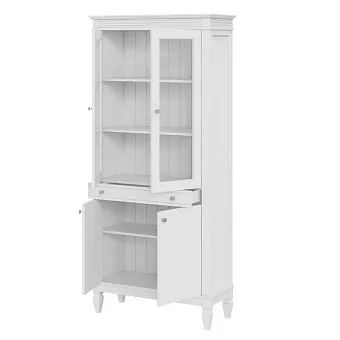 Этот белый стеллаж “Ольса” - отличный вариант для хранения любимых книг. Здесь они будут в полном порядке и всегда под рукой. Оснащен внутри вместительными полками, двумя дверями (филенка), двумя стеклянными дверями и одним выдвижным ящиком. Устойчиво держится на высоких ножках. Хороший вариант для гостиной, детской комнаты или кабинета. Может использоваться самостоятельно или в сочетании с другими предметами из этой коллекции.