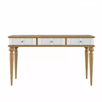 Классический письменный стол из коллекции “Рандеву” для поклонников светлых интерьеров. Широкая удобная столешница подойдет для работы за компьютером. Под ней расположено три выдвижных ящика для канцтоваров, документов и разных мелочей. Все детали сделаны из натурального массива дерева , что обеспечивает их прочность и надежность. Отличное приобретение для личного кабинета, гостиной или спальни. Широкая столешница удобна как для работы за компьютером, так и для рисования и другого ручного труда. Фотографии могут не передавать точный цвет изделия.