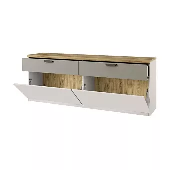 Тумба RTV 2D2S MODERN – комфортабельный и модный предмет мебели для создания интерьера гостиной, а именно, тв-зоны. Модель отличают практичность, модное сочетание текстур, большая поверхность верхнего щита для установки телевизора. Конструкция тумбы RTV 2D2S MODERN прямая, представляет два отделения за двумя глухими дверями (2D), два выдвижных ящика (2S). Двери откидные, крепятся на петли и газлифты к корпусу изделия. Оформит интересную и красивую центральную зону гостиной в комбинации с такими элементами коллекции MODERN, как шкаф 1D/87-40 (2 шт.), панель стеновая 175, полка консольная 130, а также, элементы шкафной группы глубиной 400 мм и высотой 2300 мм.