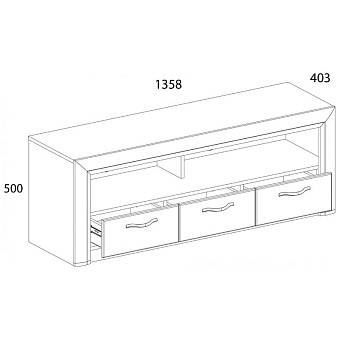 Тумба RTV 3S коллекции OLIVIA предназначена для техники, даже больших размеров и габаритов (глубина 400 мм). В корпусе тумбы есть отверстия для удобного хранения проводов. В гостиной никогда не будет беспорядка – конструкция тумбы RTV 3S представляет собой две глубокие ниши для техники, три выдвижных ящика (3S) для хранения дисков, пультов, журналов, газет, дополнительных проводов и других предметов, которые должны быть скрыты и всегда находиться под рукой. Элемент идеален в комбинации с такими модулями коллекции OLIVIA, как полка 1D и полка, так как эти элементы имеют одинаковую ширину – 1360 мм.