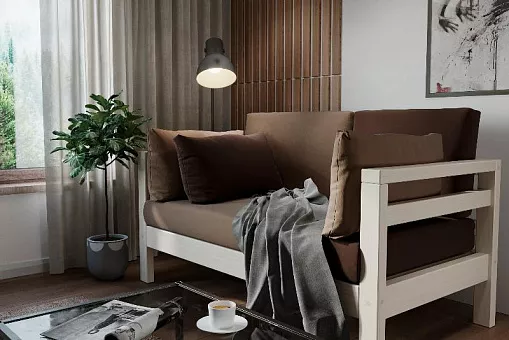 Комплект поставки: Каркас, матрасы, две приспинные и три декоративные подушки