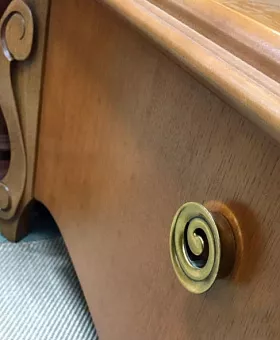 Фурнитура: Используются скрытые направляющие TANDEM полного выдвижения и бесшумного закрывания производства фирмы «Blum» (Австрия), лицевая фурнитура – ручка-кнопка производства «GIUSTI» (Италия); петля шарнирная с доводчиком и стяжки — фирмы «Hettich» Германия.