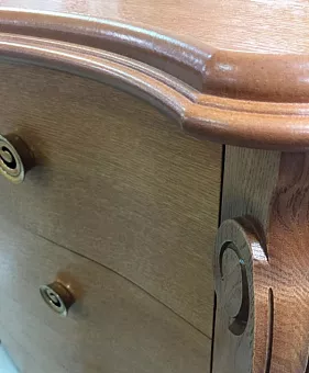 Плавные линии, изогнутые поверхности, изящные ножки придают спальне утончённость и женственность. Кровать манит к себе мягкой спинкой, очаровывает и не отпускает. Изящный туалетный столик с секретом, когда часть крышки лёгким движением руки становится зеркалом. Изделия имеют несколько цветовых решений: классический благородный — «коньяк», нежный, утончённый – «белая эмаль с серебряной патиной».
