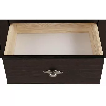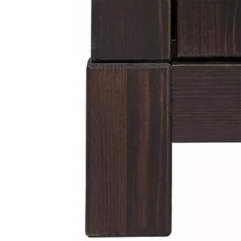 Шикарный темный комод из коллекции “Рауна” займет достойное место в гостиной или столовой. С одной стороны оборудован шестью выдвижными ящиками, с другой - тремя полками для посуды или постельного белья, прикрытых наполовину стеклянной дверцей. Высокие ножки обеспечивают оптимальную устойчивость и хороший доступ во время уборки.