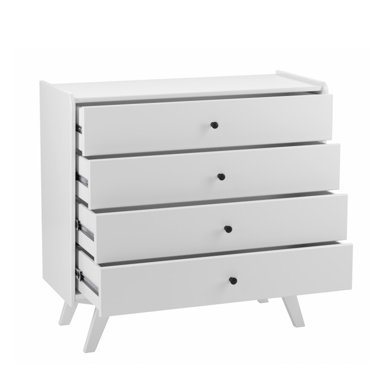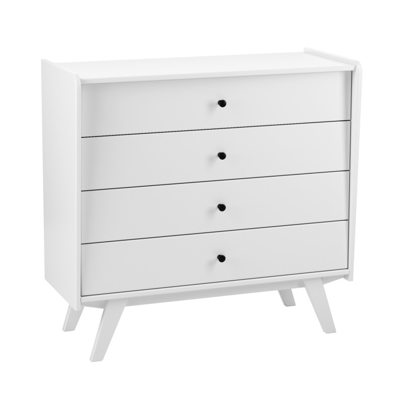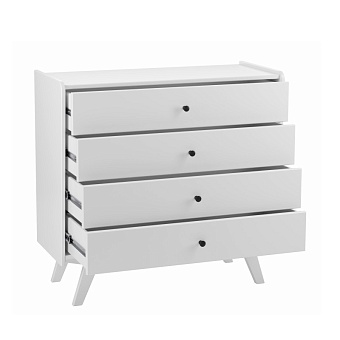 Коллекция "Винтаж" представлена предметами спальни и подростковой комнаты. Производится из массива сосны в трех цветовых вариантах: белый лак, белый лак/браун, серый лак/браун. В варианте белый лак/браун и серый лак/браун в коричневый цвет окрашены торцы корпуса, торцы внутренних полок, ножки предметов. Основная особенность коллекции - окраска плоских поверхностей происходит вальцовым методом, материалами ультрафиолетового отвердения. При таком способе нанесения краски покрытие получается идеально ровным, структура дерева почти не видна. Выдвижные ящики коллекции на шариковых направляющих с доводчиками закрывания. Петли дверей также с доводчиками закрывания. Боковины и задняя стенка выдвижных ящиков окрашены в цвет корпуса. Комод Винтаж 4 ящика белый лак: Комод с четырьмя ящиками из массива сосны. Покрытие - укрывистый белый лак, структура древесины почти не просматривается. Выдвижные ящики на направляющих полного выката с доводчиками.