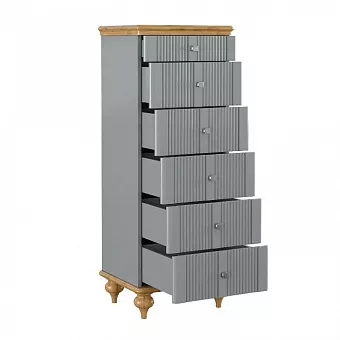 Комод оснащен шестью выдвижными ящиками. Фурнитура на ящиках с доводчиками. Высокие ножки обеспечивают оптимальный доступ при уборке.