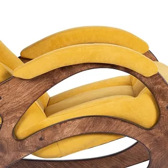 Кресло-качалка фабрики Драккар эргономически комфортно с удобным углом наклона спинки, мягким подголовником и подлокотниками, которые крепятся на липучках. При изготовлении полозьев используется 3D-технология тиснения «под дерево». Каркас выполнен из фанеры в цвете: Венге, Античный дуб, Дуб молочный. Обивка кресла выполнена из качественного велюра в цвете на выбор: City Grey, Garden, Carrot Juice, Purple. Ширины посадочного места 52 см. Выдерживаемая нагрузка: 150 кг. Красивый дизайн кресла-качалки отлично впишется в любой уголок Вашего дома или дачи, так же подойдет для офиса.