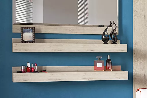 Полка 1NL OSKAR имеет прямую конструкцию, открытого типа, размер L – little (маленький, в сравнение с полками 1NB, 1NM). Конструкция элемента представляет собой горизонтальный сборный щит и вертикальный щит.