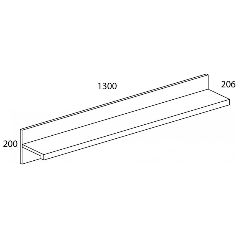 Полка навесная T MODERN. Такой элемент как полка т-образной формы удобна и практична, и может навешиваться в гостиной, спальне, молодёжной/детской комнате, прихожей, кабинете для хранения тех вещей, которые необходимы для повседневного пользования. Полки открытого типа не загромождают визуально пространство, но не теряют свой функционал. Конструкция полки навесной T MODERN прямая, т-образной формы; представляет соединение вертикального и горизонтального щитов. Гармонично будет смотреться в композиции с такими предметами коллекции MODERN, как стол письменные 130, шкаф навесной 1D/130-40, тумба RTV 2D1S, кровать 120S, так как данные модели такой же ширины – 1300 мм.