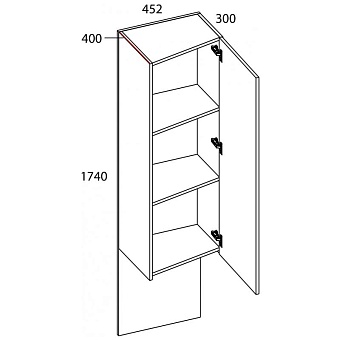 Шкаф 1DL/45 MODERN – оригинальное дополнение в общей композиции шкафной группы для интерьера спальни. В коллекции представлен такой же элемент, только 1DP/45 – правый (навеска справа). Следовательно, для более гармоничной конструкции рекомендуется приобретать два элемента – шкаф 1DL/45 и 1DP/45. Модель предназначена для хранения предметов одежды, белья и других вещей. Конструкция шкафа 1DL/45 MODERN прямая, трапециевидной формы; представляет одно отделение с полками ЛДСП за глухой дверью (1D). Дверь распашная, крепится на петли к боковому корпусу изделия. Кодировка «L» обозначает навеску элемента слева от общего набора предметов, «45» - ширину элемента.