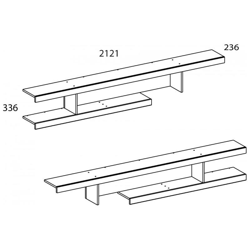Полка 2NB OSKAR – оригинальное и интересное решение для того, чтобы сделать интерьер не только практичным, но и фактурным, индивидуальным. Данный элемент можно устанавливать в гостиной, молодёжной комнате, прихожей, спальне (если позволяет площадь, так как изделие имеет большую ширину). Полка 2NB имеет прямую конструкцию, размер B – big (большой). Конструкция элемента представляет собой два горизонтальных щита, образующие ниши (2N), которые расположены друг над другом, и вертикальный щит.