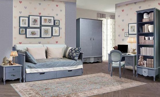 Набор выполнен с использованием шпона и массива дуба на лицевых поверхностях. Украшают набор: фигурный набор шпона, декоративные элементы с выдавленными полосками, подчёркивающими структуру древесины, волнообразные кромки нижних деталей, объёдиняющие все изделия в единую композицию. Зеркало навесное овальной формы прекрасно сочетается с таким же по конфигурации на шкафу. Внутренние поверхности деталей облицованы плёнкой с финиш-эффектом. Крышки из плиты ДСП, облицованной шпоном и бруском дуба с профильным фрезерованием по лицевым кромкам.