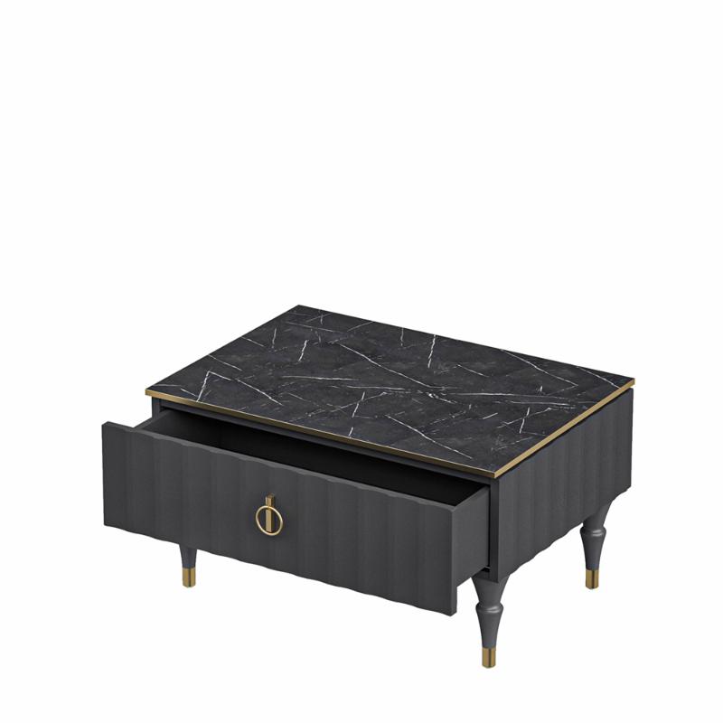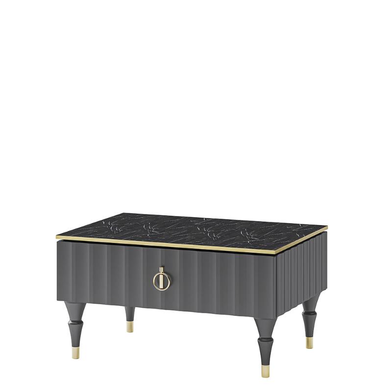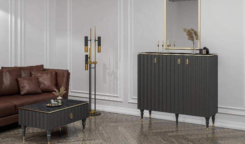 Коллекция мебели Лоренсо – это изысканный дизайн, подчеркнутый золотой металлической линией на изящной столешнице Мрамор Неро Маркина.