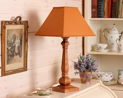 Лампа настольная изготовлена из массива дуба. Комплектуется абажуром на выбор. Патрон Е27.