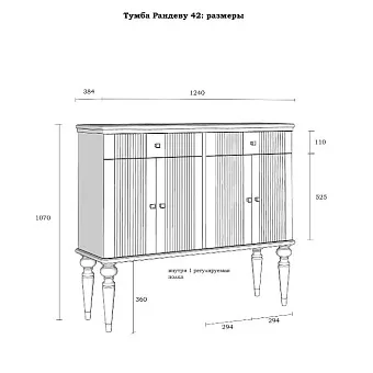 Тумба «Рандеву» 42 широкая и удобная. Состоит из двух вместительных отделений с полками за распашными дверками сверху два широких выдвижных ящика. Подойдет как для прихожей в городской квартире, так и для загородного дома.