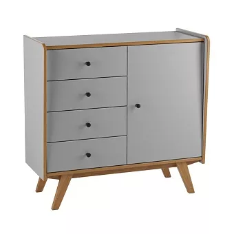 Тумба Винтаж 1 дверь 4 ящика серый лак/браун