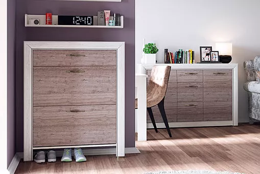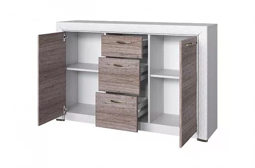 Тумба 2D3S OLIVIA достойно проявляет себя в оформлении интерьера гостиной, спальни, прихожей, столовой как отдельный элемент, так и в комбинировании с другими модулями коллекции OLIVIA (возможно оформление туалетного стола с зеркалом B (ширина 1361 мм)). Тумба 2D3S имеет прямую конструкцию. Конструкция элемента представляет собой два отделения с полками из ЛДСП за глухими дверями (2D) для хранения предметов одежды, посуды и других вещей; три выдвижных ящика (3S) (верхний ящик неглубокий, средний и нижний ящики – глубокие). Двери распашные, крепятся на петли к боковому корпусу изделия.
