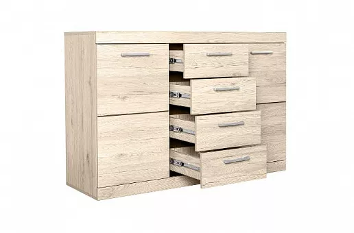 Тумба 2D4S OSKAR – универсальный предмет мебели с функциональным наполнением – вот что необходимо для оформления стильного и современного интерьера. Тумба 2D4S OSKAR имеет прямую конструкцию. Конструкция элемента представляет собой два отделения с полками из ЛДСП за глухими дверями (2D), четыре выдвижных ящика (4S), расположенных друг над другом. Двери распашные, крепятся на петли к боковому корпусу изделия.