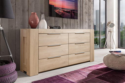 Серия Фьорд выполнена в скандинавском стиле, полностью из массива дуба. Поступает в собранном виде. Каркас-массив дуб, фасад- массив дуб. Задняя стенка, дно ящиков - фанера, облицованная шпоном дуба. Вес изделия 93 кг. Фотографии на сайте могут не передавать точный тон мебели.