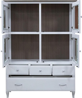 Каркас изделий плавно переходит в высокие точеные опоры. Он изготавливается из массива дуба. Фасад, декоративный цоколь, карниз, крышки – также