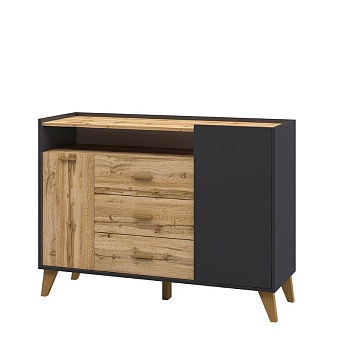 Фасад выполнен из ЛДСП в двух цветах: Белый/Дуб Вотан, Графит/Дуб Вотан.