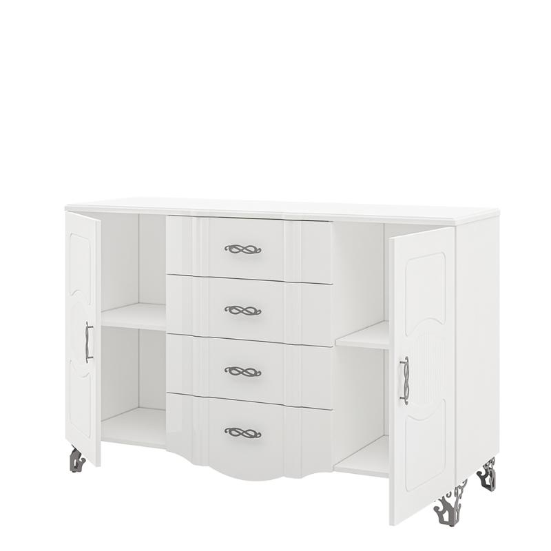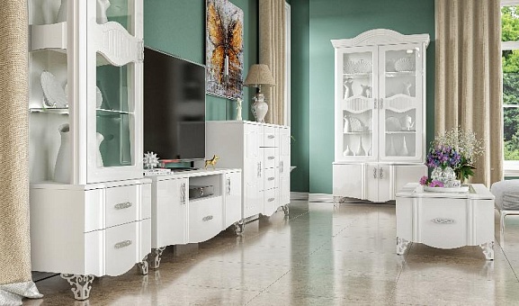 Коллекция «София» создана белорусской фабрикой Неман. Плавные изгибы, глянец фасада и необычные металлические детали дополнят интерьер в романтическом стиле. Фасад: МДФ-16мм, крышка МДФ-22мм Kronospan Szczecinek (Польша) + ПВХ Imawell (Германия).