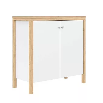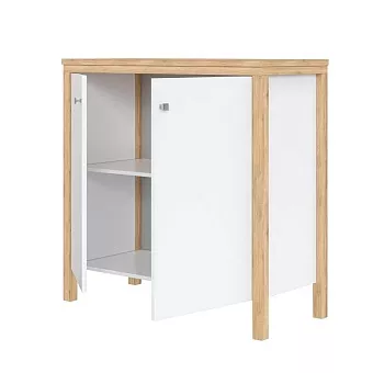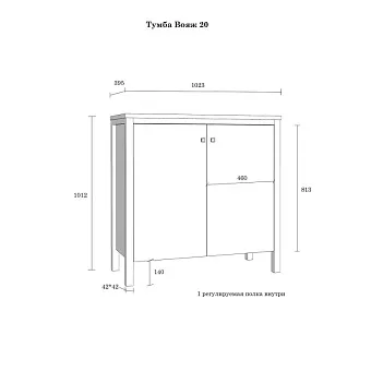 Тумба (комод) оснащен двумя распашными дверкой с одной полкой. Фурнитура на дверях с доводчиками. Высокие ножки обеспечивают оптимальный доступ при уборке.