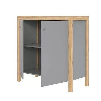 Тумба (комод) оснащен двумя распашными дверкой с одной полкой. Фурнитура на дверях с доводчиками. Высокие ножки обеспечивают оптимальный доступ при уборке.