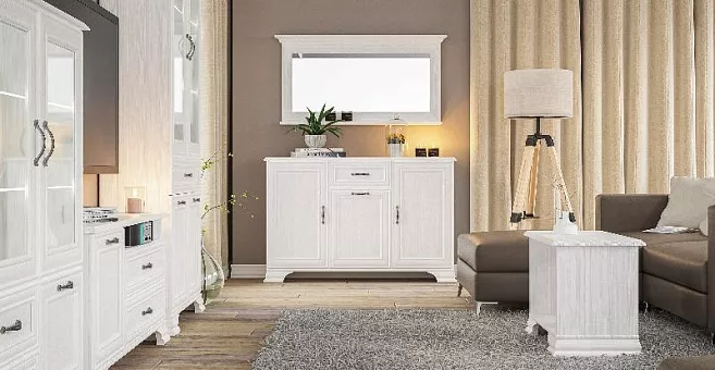 Серия мебели Юнона в классическом стиле с отделкой структурной фактуры, обрамлённая рамочным фасадом, где металлические ручки выгодно подчёркивают стиль и изящество. Мебель этой серии настолько универсальна, что комбинируя, Вы создаёте свой индивидуальный стиль жилого помещения.