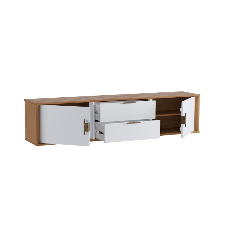 Тумба ТВ Бридж подвесная 2 двери 2 ящика (полка навесная 22) браун/белый лак