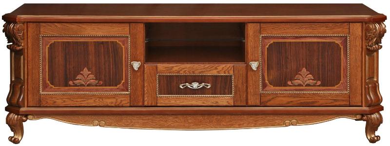 Тумба "Альба ТВ2с" П 485.02с палисандр (с зол., с сер.) фабрики Пинскдрев в классическом стиле характерна массивность, основательность и пышность форм. Альба является классическим примером мебели из массива дуба. Она включает в себя мебель для
