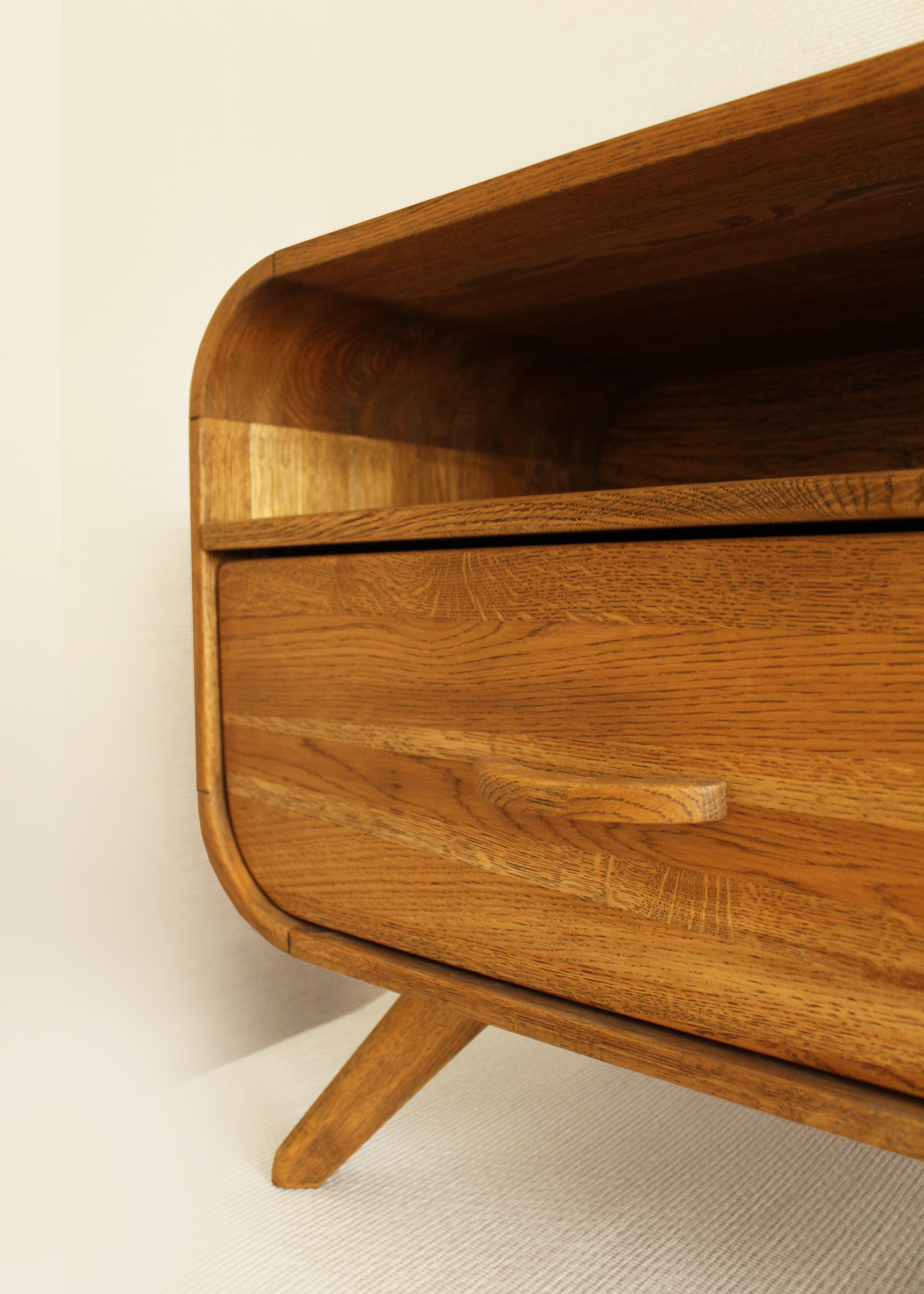 Ниша и два выдвижных ящика Производство: Россия Материал: массив дуба Отделка: морилка, масло Форма поставки: в собранном* виде Вес (кг): 44,00 Объем (м.куб.): 0,90 Количество пакетов: 1 Габариты (ширина*глубина*высота):1200*450*600 Коллекция мебели Aachen (Аахен) из цельноламельного массива дуба для спальни и гостиной. Стиль авангард. Двенадцать предметов. Особенность дизайна данной коллекции – радиусные элементы R90 мм в угловых соединениях и ручках.На мебель устанавливаются петли и шариковые направляющие с плавной доводкой. Есть возможность изготовления по индивидуальным размерам заказчика.
