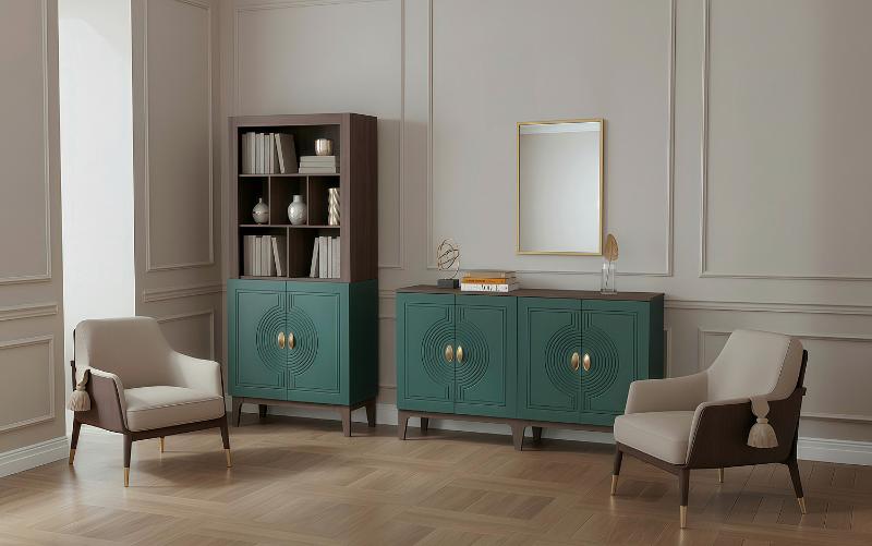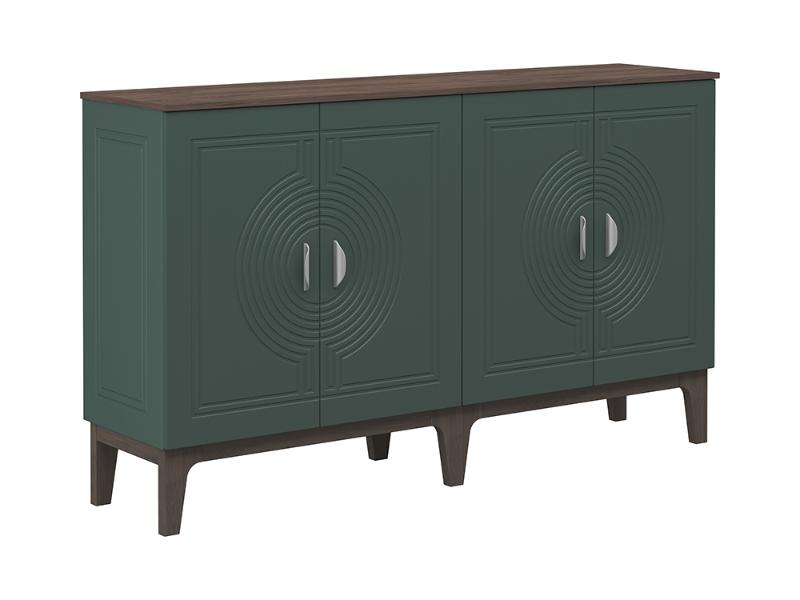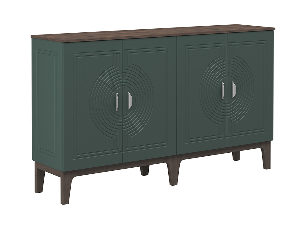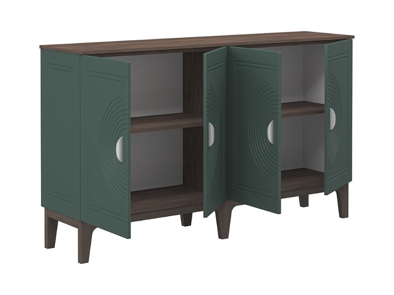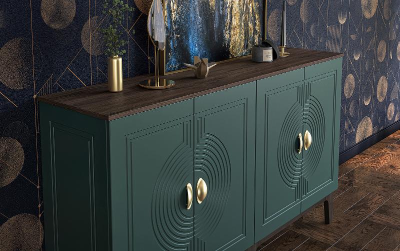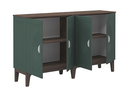 Калипсо - коллекция для гостиной. Сочетание насыщенного корпуса Гикори Прадо и акцентного фасада Комбу Грин формирует образ, в котором выразительность встречается с утончённостью. Тёплая древесная текстура наполняет интерьер уютом, а глубокий зелёный фасад придаёт пространству характер и индивидуальность. Коллекция Калипсо раскрывает характер интерьера через тонкие линии, глубокие оттенки и тактильную теплоту, превращая повседневность в эстетическое наслаждение. Витрины добавляют интерьеру лёгкости. Прозрачное стекло обеспечивает безупречный обзор выставленных предметов: будь то любимый декор или итальянский сервиз, добавляя интерьеру уникальную изюминку и шарм. Создайте пространство своей мечты, наполненное светом, теплом и эстетикой, которая вдохновляет каждый день. Материал корпуса: ЛДСП 16мм, цвет Гикори Прадо тёмный, нижние боковые стенки МДФ 19 мм. Материал фасада: МДФ 19 мм, Комбу Грин/Гикори Прадо тёмный. Задняя стенка: ХДФ 3мм. Кромка: пластик ПВХ. Полки стеклянные (для витрин): 6 мм. Фурнитура: петли с доводчиком, производство GTV (Польша). Система выдвижения: бесшумные направляющие с доводчиком, производство GTV (Польша). Зеркала: три вида прямоугольных зеркал в раме из алюминия, цвет брашированное золото. Ручки: дизайнерские металлические. Основание: опоры и обвязка из массива Ольхи. Столешница: ЛДСП 16 мм, цвет Гикори Прадо тёмный. Фотографии на сайте могут не передавать точный тон мебели, узнавайте у наших менеджеров.
