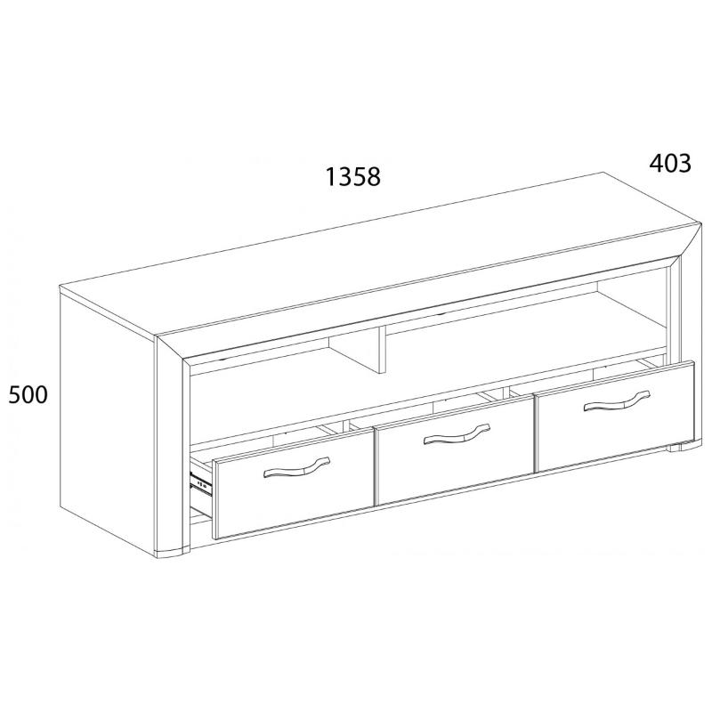 Тумба RTV 3S коллекции OLIVIA предназначена для техники, даже больших размеров и габаритов (глубина 400 мм). В корпусе тумбы есть отверстия для удобного хранения проводов. В гостиной никогда не будет беспорядка – конструкция тумбы RTV 3S представляет собой две глубокие ниши для техники, три выдвижных ящика (3S) для хранения дисков, пультов, журналов, газет, дополнительных проводов и других предметов, которые должны быть скрыты и всегда находиться под рукой. Элемент идеален в комбинации с такими модулями коллекции OLIVIA, как полка 1D и полка, так как эти элементы имеют одинаковую ширину – 1360 мм.