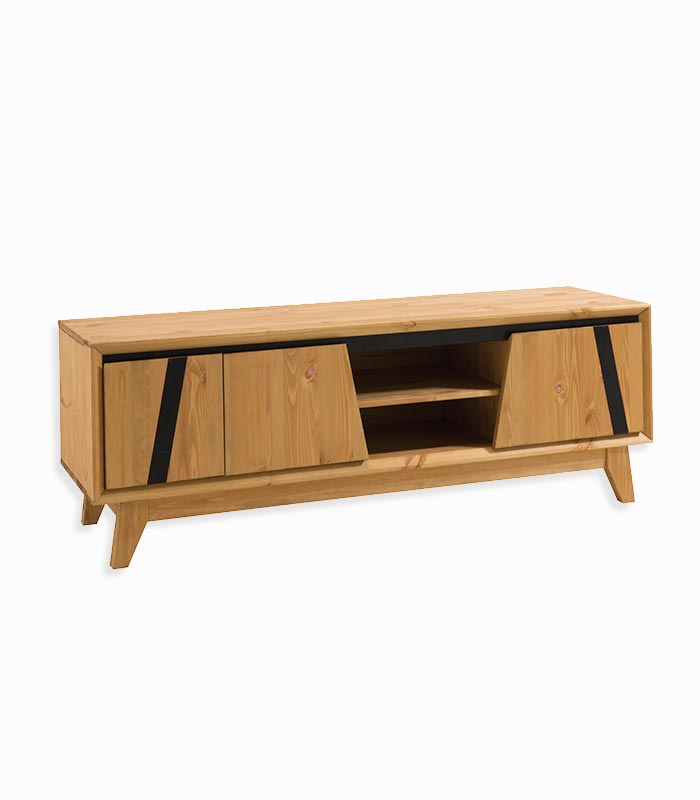 В коллекцию входят шкаф для посуды, тумбы с разным количеством дверей, тумбы для ТВ и журнальный стол. Все предметы мебели изготовлены из массива сосны и отличаются вместительностью, функциональностью и современным дизайном. Тумба ТВ 155 Мэнсон: 3 распашные дверцы, за каждой дверцей находится полка.