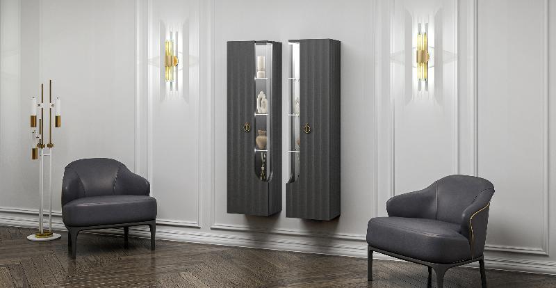 Необычные подвесные шкафы идеально смотрятся вместе, глядя друг на друга прозрачными боковыми витринами, задавая тон всему интерьеру. С мебелью Лоренсо