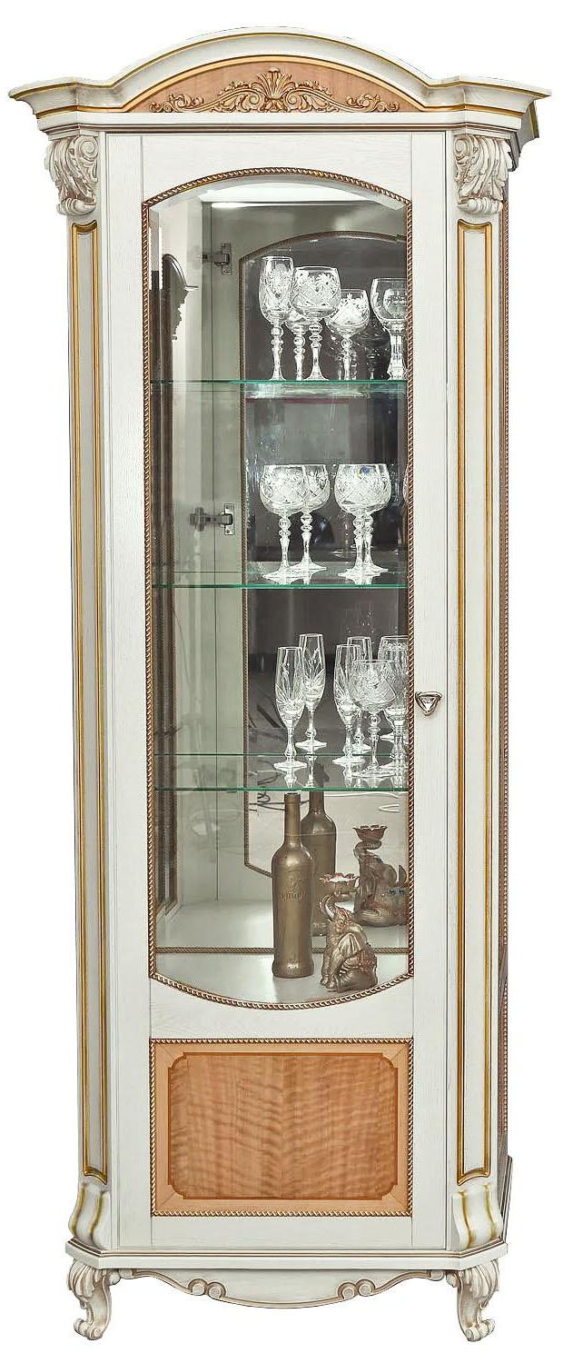 Шкаф с витриной "Альба 5" П 485.05 слоновая кость (с зол., с сер.)