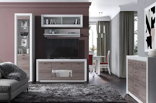 Материал: ЛДСП - 18 мм, МДФ - 25 мм - патинированные планки, закалённое стекло - 4 мм (витрина).