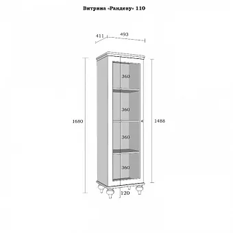 Витрина оснащена четырьмя полками за распашной, стеклянной дверью. Открывание двери возможно как слева на право, так и справа налево. Фурнитура на дверях с доводчиками. Высокие ножки обеспечивают оптимальный доступ при уборке.