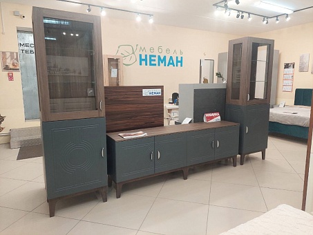 Калипсо - коллекция для гостиной. Сочетание насыщенного корпуса Гикори Прадо и акцентного фасада Комбу Грин формирует образ, в котором выразительность встречается с утончённостью. Тёплая древесная текстура наполняет интерьер уютом, а глубокий зелёный фасад придаёт пространству характер и индивидуальность. Коллекция Калипсо раскрывает характер интерьера через тонкие линии, глубокие оттенки и тактильную теплоту, превращая повседневность в эстетическое наслаждение. Витрины добавляют интерьеру лёгкости. Прозрачное стекло обеспечивает безупречный обзор выставленных предметов: будь то любимый декор или итальянский сервиз, добавляя интерьеру уникальную изюминку и шарм. Создайте пространство своей мечты, наполненное светом, теплом и эстетикой, которая вдохновляет каждый день. Материал корпуса: ЛДСП 16мм, цвет Гикори Прадо тёмный, нижние боковые стенки МДФ 19 мм. Материал фасада: МДФ 19 мм, Комбу Грин/Гикори Прадо тёмный. Задняя стенка: ХДФ 3мм. Кромка: пластик ПВХ. Полки стеклянные (для витрин): 6 мм. Фурнитура: петли с доводчиком, производство GTV (Польша). Система выдвижения: бесшумные направляющие с доводчиком, производство GTV (Польша). Зеркала: три вида прямоугольных зеркал в раме из алюминия, цвет брашированное золото. Ручки: дизайнерские металлические. Основание: опоры и обвязка из массива Ольхи. Столешница: ЛДСП 16 мм, цвет Гикори Прадо тёмный. Фотографии на сайте могут не передавать точный тон мебели, узнавайте у наших менеджеров.